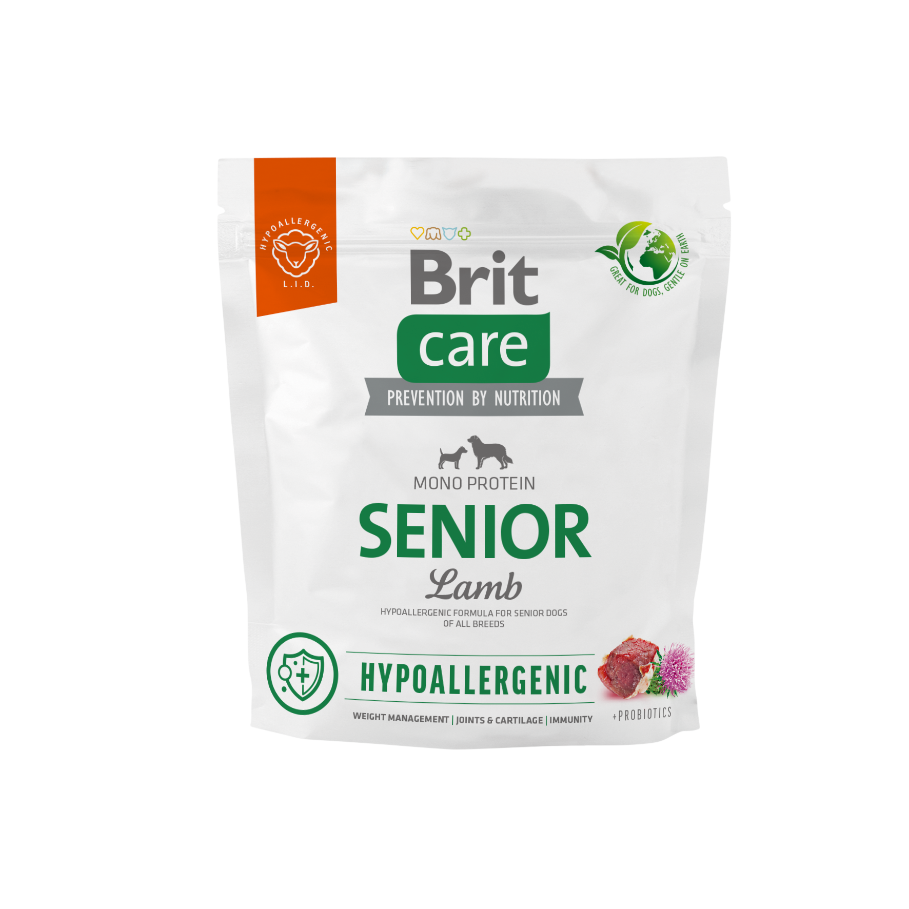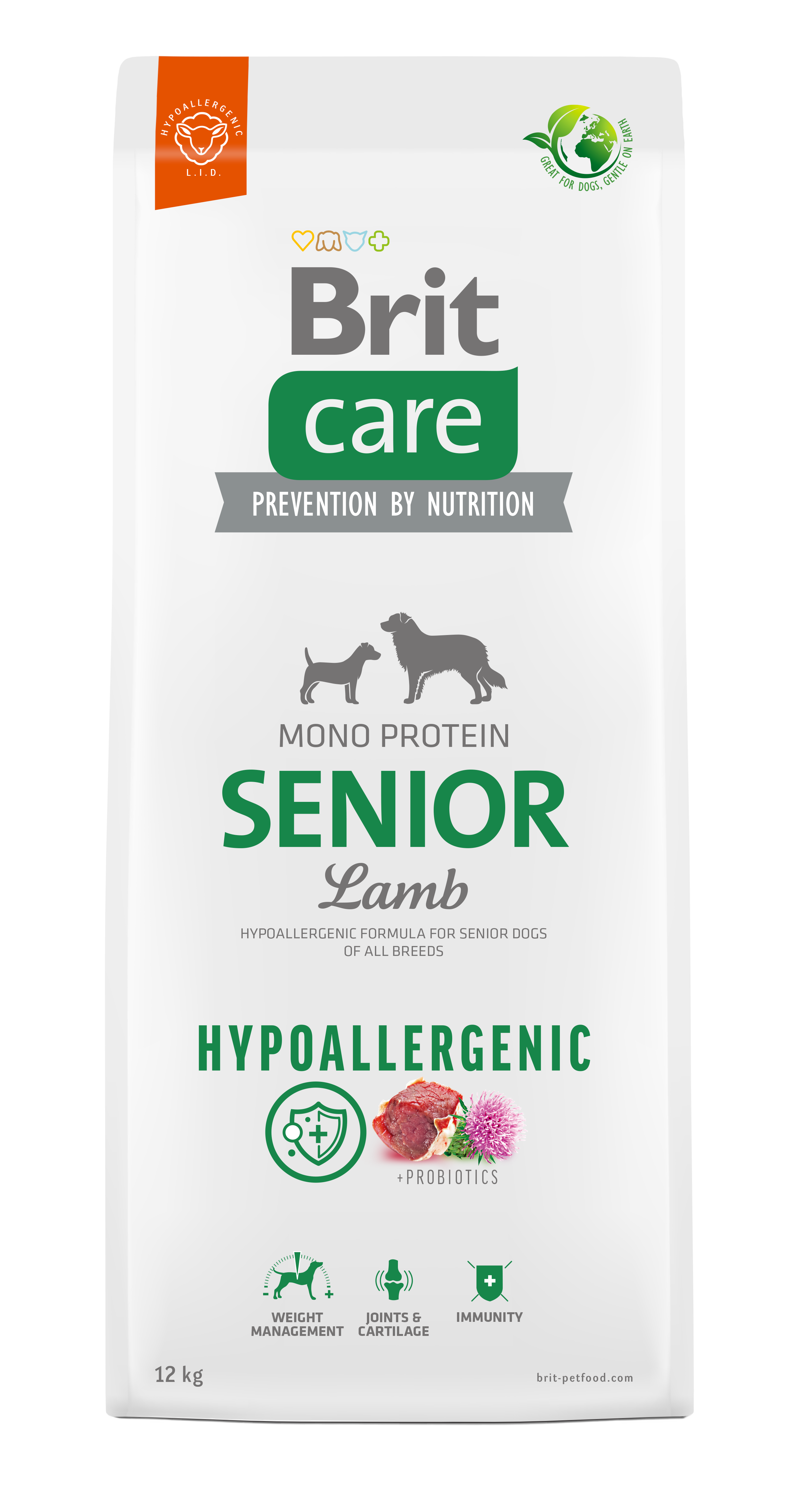Twój pies wiernie towarzyszył Ci przez długie lata – a teraz zasługuje na troskliwą opiekę i dietę dopasowaną do jego wieku. Po 7. roku życia metabolizm zwalnia, a potrzeby żywieniowe zmieniają się. Dlatego tak ważne jest, by dostarczać mu lekkostrawne, odżywcze składniki, które pomogą utrzymać go w dobrej kondycji. Co wybrać? Brit Care Dog Hypoallergenic Senior – pełnoporcjową, hipoalergiczną karmę stworzoną specjalnie dla starszych psów wszystkich ras.