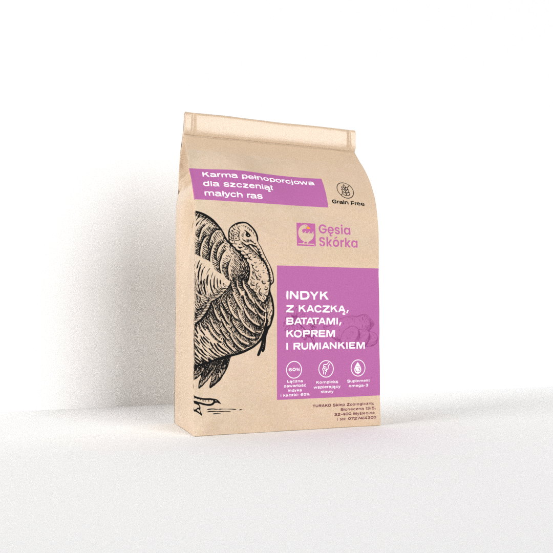 GĘSIA SKÓRKA GF 50 Indyk z kaczką, batatami, koprem i rumiankiem