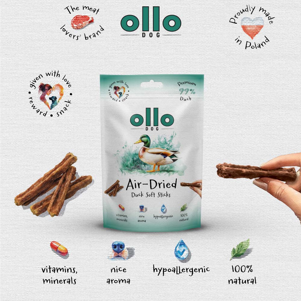 Ollo Air-Dried Duck Strips to doskonały wybór dla każdego psa - od szczeniaka po seniora. Spraw swojemu pupilowi radość i podaruj mu to, co najlepsze!