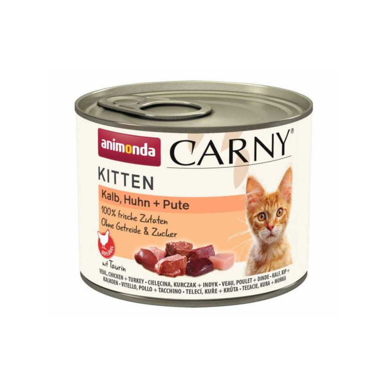 Carny® Kitten - ze świeżych mięsnych składników - to zbilansowany, smakowity zdrowy pokarm najwyższej jakości dla rosnących kotów w pierwszym roku życia. Kocięta bardzo wcześnie wykształcają swoje pierwsze upodobania smakowe. Carny® Kitten ze smakowitymi, odpowiednimi dla kociąt, małymi mięsnymi kawałeczkami jest specjalnie dostosowany do zapotrzebowania na składniki pokarmowe rosnących kotów.